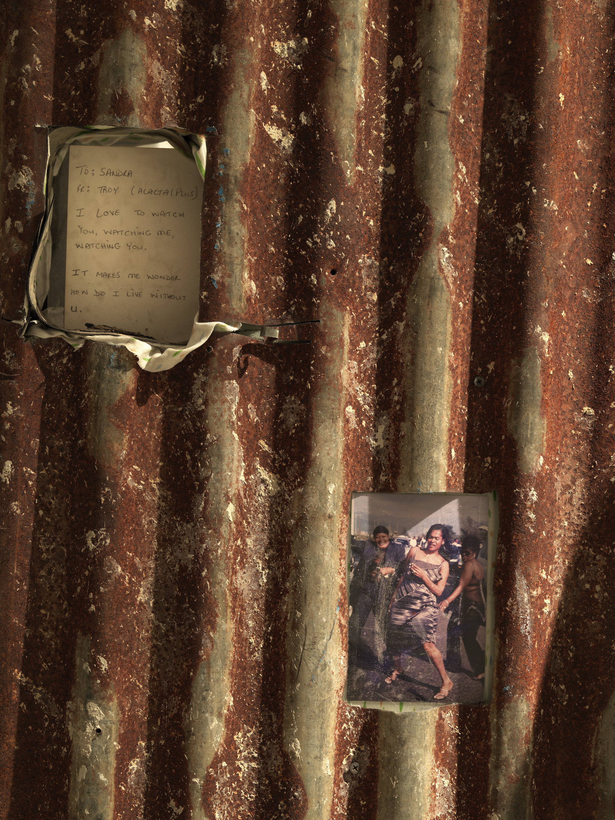 Largely absent from institutional archives, documentation of Jamaica’s popular movements are still commonly seen in the eyes of Jamaica’s socio-economic elite as unwanted clutter rather than treasured national heritage. Smith counters this through the construction of monumental reliquaries, which house these corroding testaments within the material landscape of corrugated zinc, tarp, repurposed wood, and breeze blocks from which they came. Composed of the marked, residual traces of a former life, these structures are also ruins in reverse, and the possibilities once envisioned within them are rejuvenated with renewed hope. Falling into the abstract time of memories and dreams, Smith places the viewer somewhere between formerly imagined (and now remembered) utopias and a distant, nostalgic future both entropic and far away.